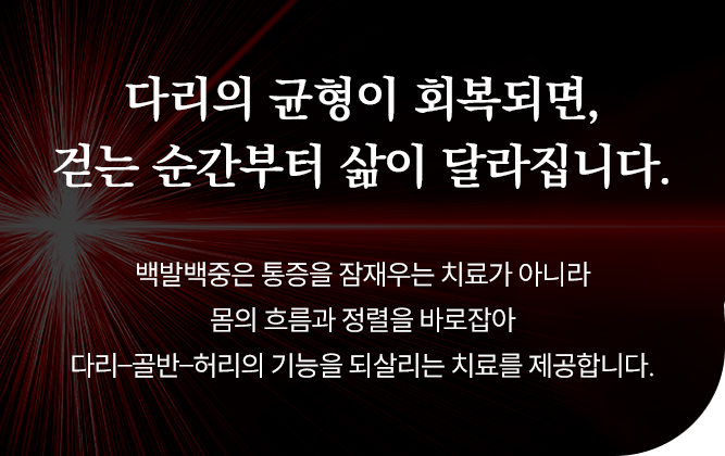 백발백중은 몸의 구조와 기능을 되살리는 근본 치료를 제공합니다.