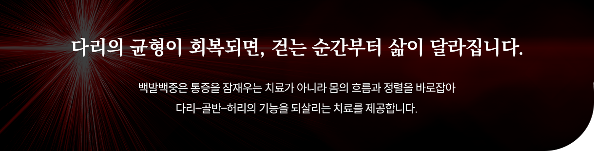 다리–골반–척추까지 연결된 전체 흐름을 분석해 치료합니다.